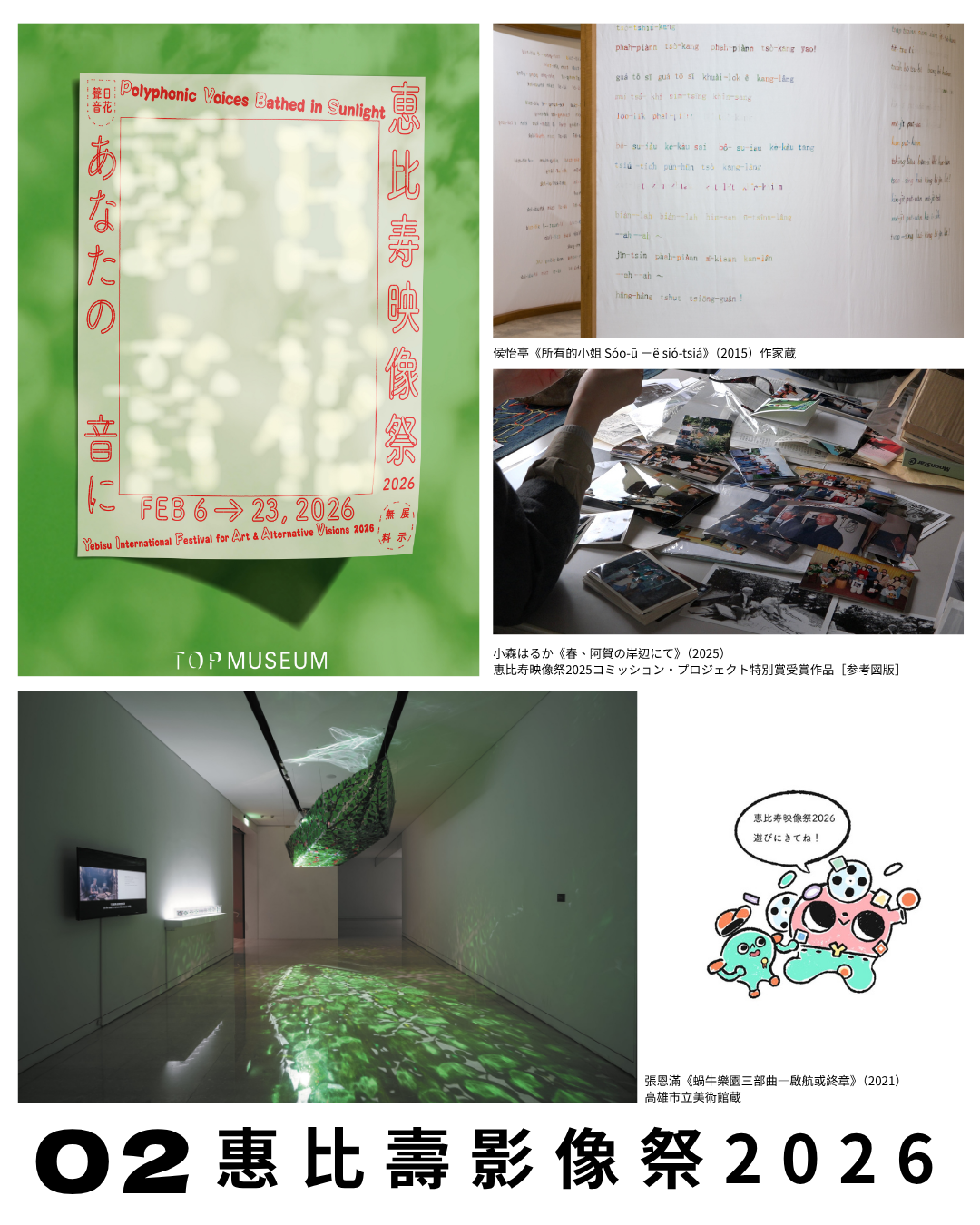 台湾出身キュレーター邱于瑄の台湾語の概念「日花聲音」を起点に、30組以上の国内外アーティストが参加。各国の多様な文化や言語が交差する中、台湾作家の作品や原住民族文化、日本との歴史的つながりも浮かび上がり、光と声が重なり合う多層的な体験を生み出します。