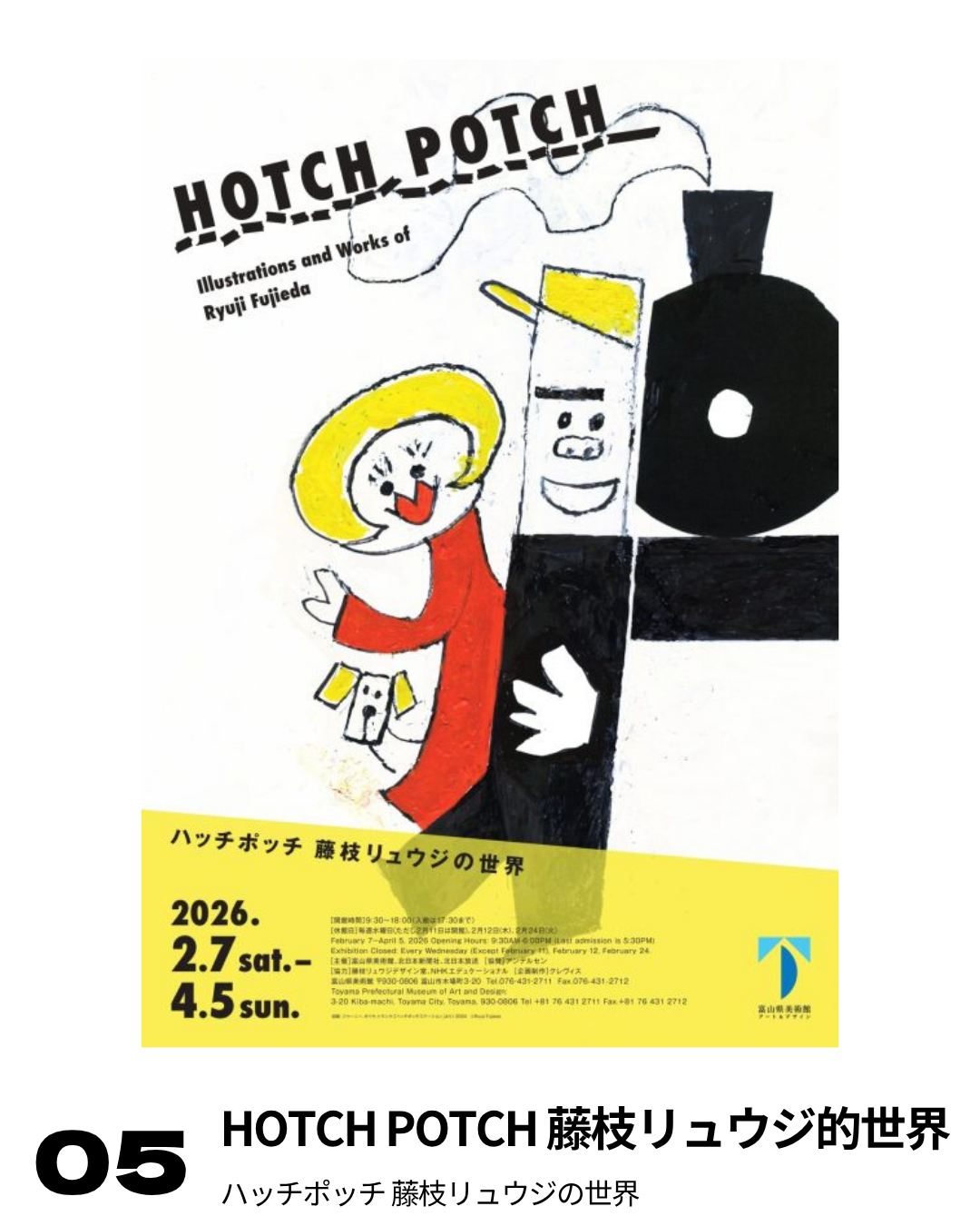 活躍逾半世紀的插畫家、藝術總監藤枝リュウジ(Ryuji Fujieda)首度大型回顧展。透過500件以上作品,從繪本、書籍裝幀到「HOTCH POTCH 車站」等電視與廣告的藝術指導,呈現其充滿童趣與溫度的創作世界。