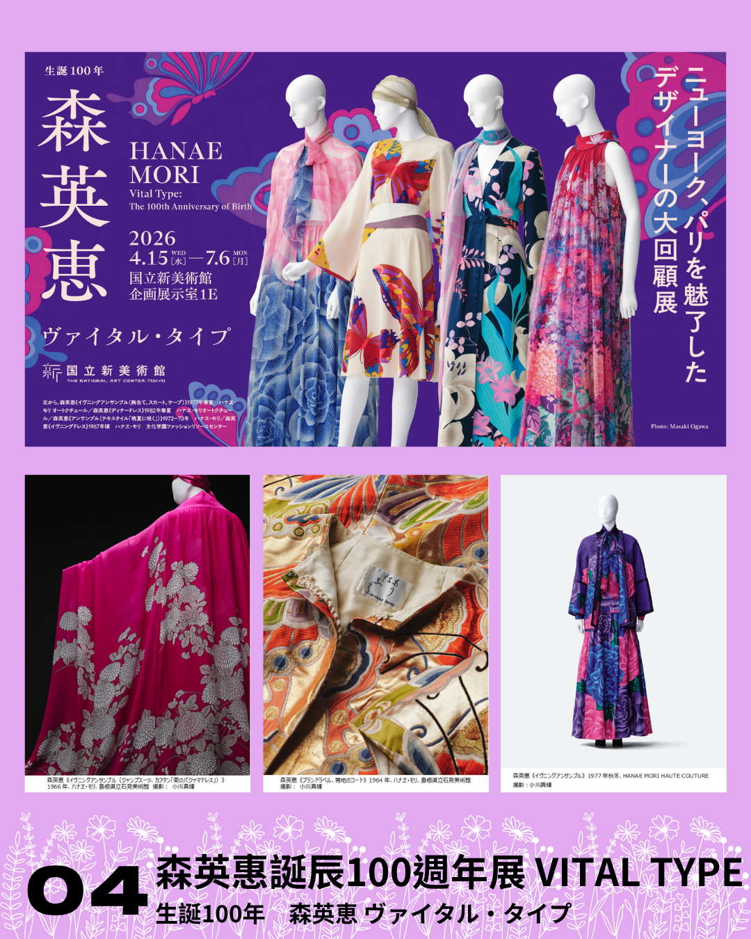 森英恵は映画衣装で頭角を現し、アジア人初のパリ・オートクチュール正会員となった伝説のデザイナーです。本展は、彼女が提唱した新しい女性像や、西陣織など創造を支えた日本の伝統繊維産業の姿にも光を当てます。