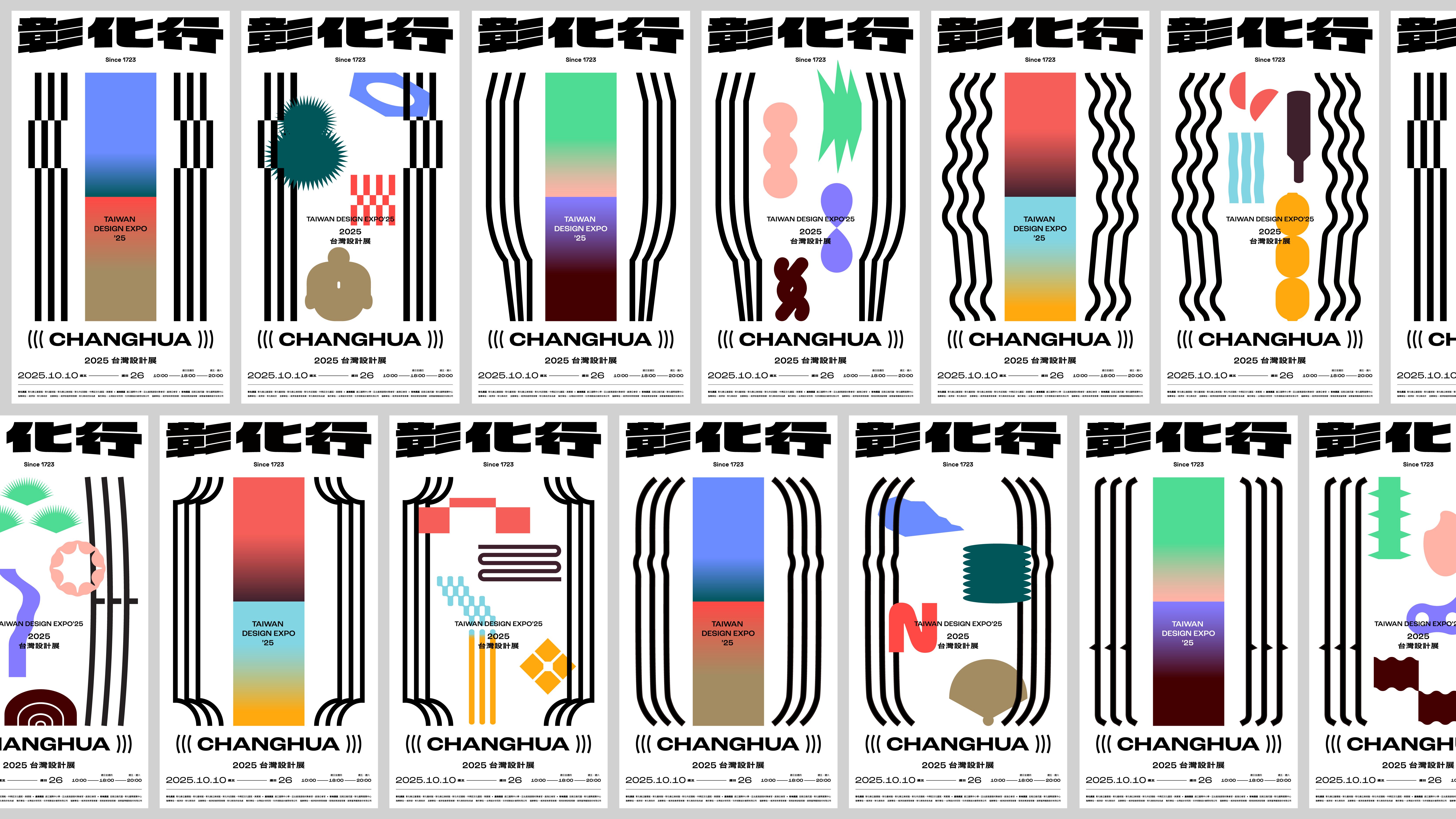 主代表配色以藍綠、橙紅與金色漸層,描繪彰化縣海天交界、地景人文與城市色彩意象。副視覺則由主色延伸出36種半抽象幾何圖像,賦予各展區獨特意涵。翻轉大家對彰化的既定印象!