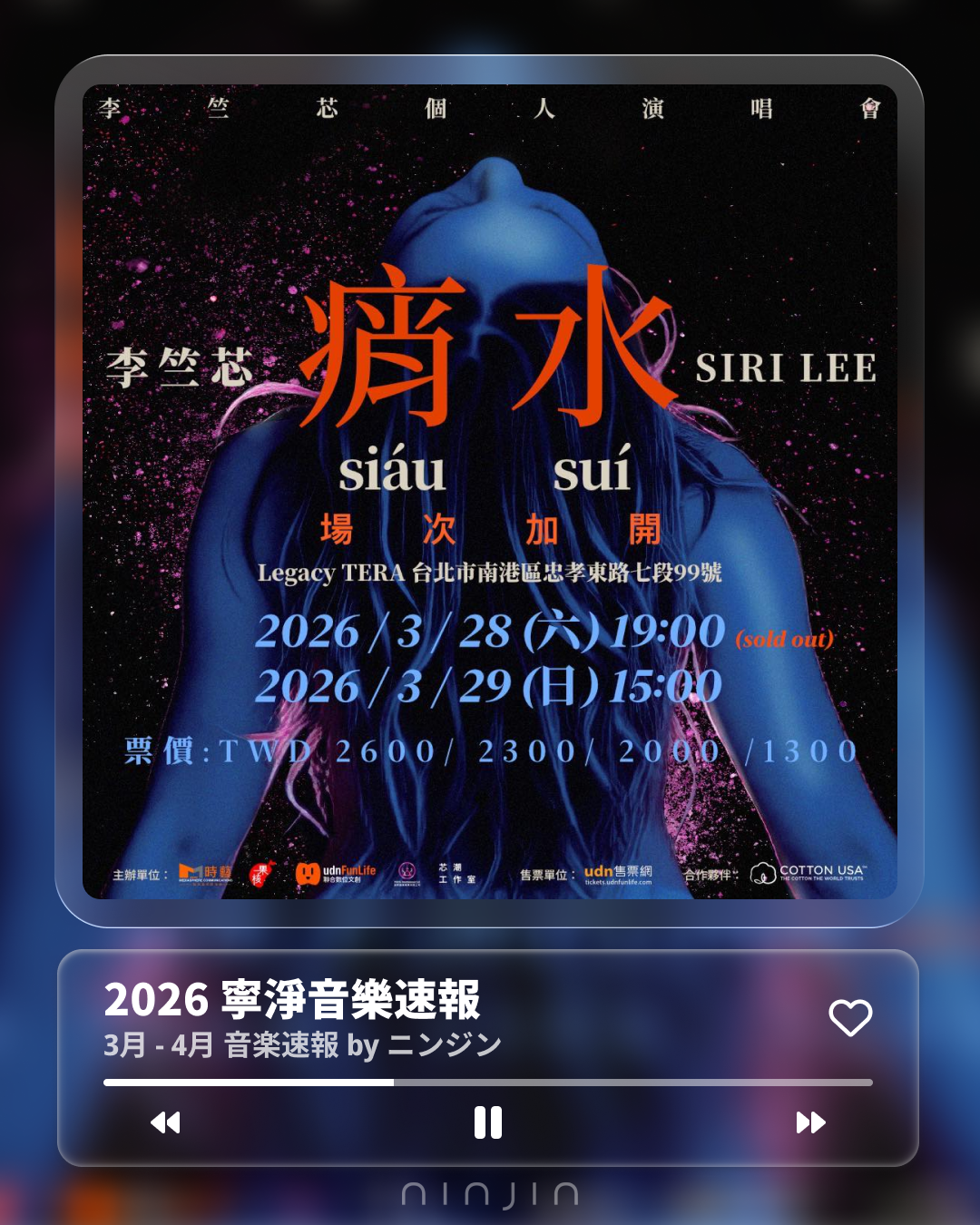 ▋ 李竺芯演唱會 <痟水 Siáu Suí>【03.28 - 03.29】 @台北 Legacy TERA