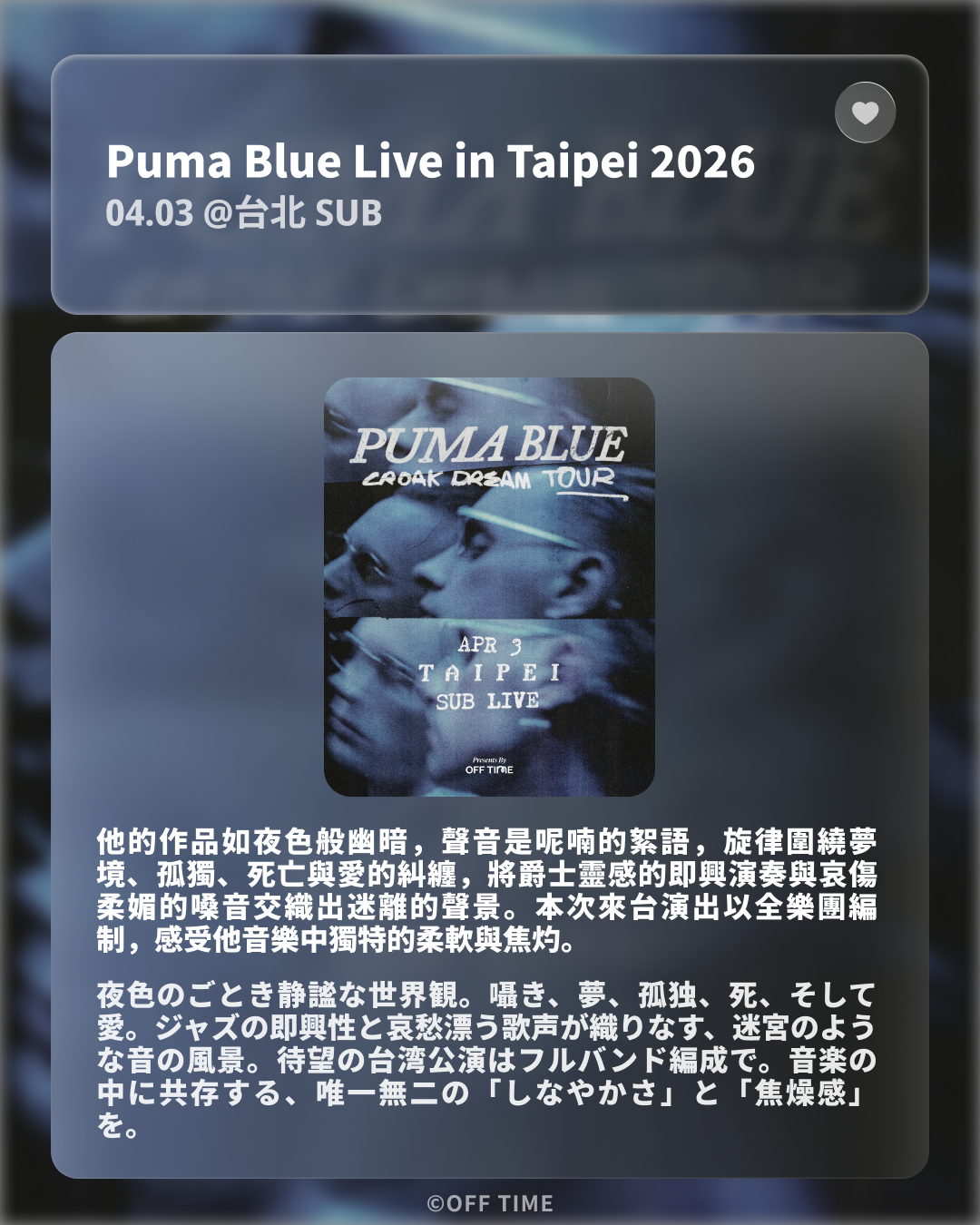 ▋ Puma Blue Live in Taipei 2026【04.03】 @台北 SUB
