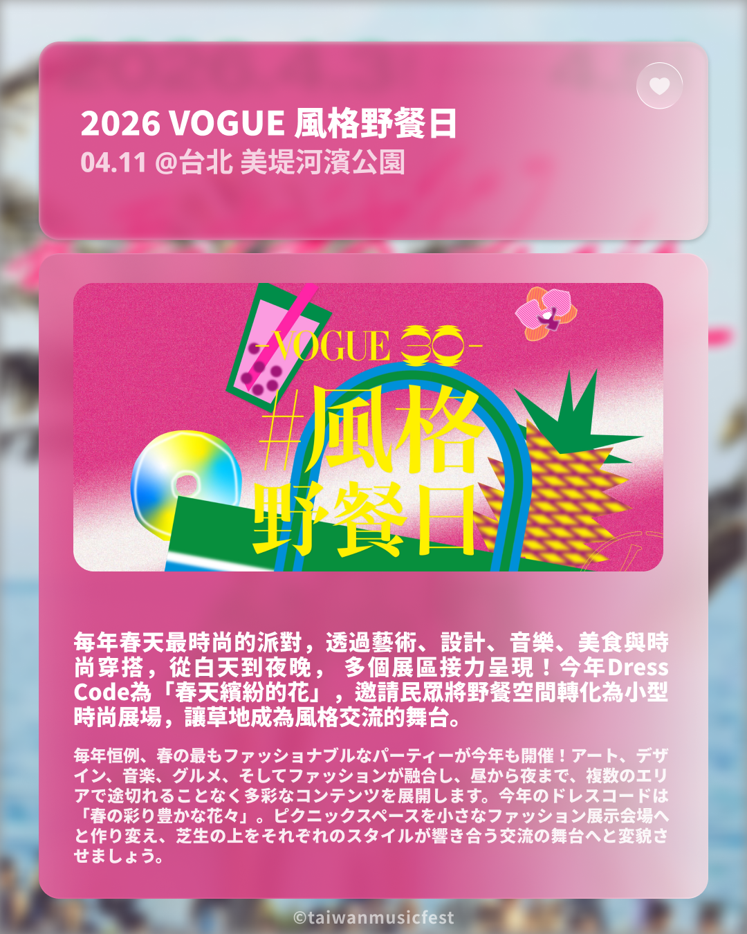 ▋ 2026 VOGUE 風格野餐日【04.11】 @台北 美堤河濱公園