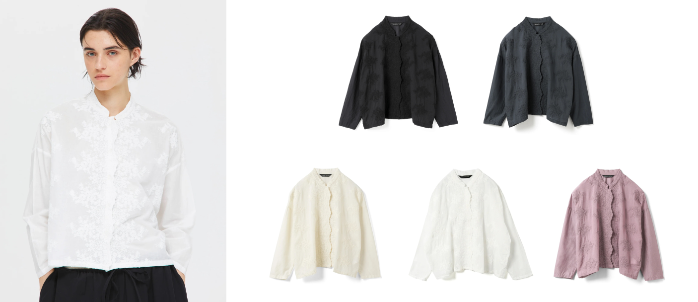 精緻蕾絲設計帶有復古氣息的細緻優雅美感。設計細節上,前襟在扣上釦子後會被遮住的內側部位也同樣加入蕾絲細節,即使作為外搭穿著時,也能完整展現蕾絲的精緻層次感。材質採用輕盈滑順、帶有微微透膚感的棉質素材。只需搭配簡約下身單品,就能輕鬆完成具有質感與風格的穿搭造型。